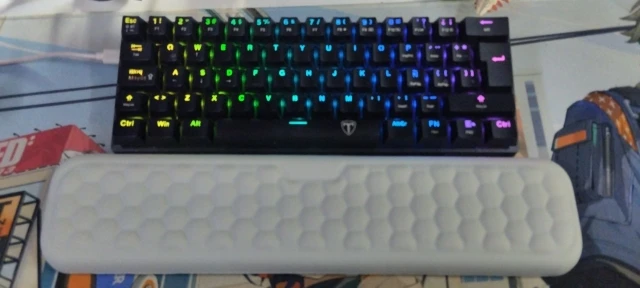 -Fonction repose poignet : Ce produit est doté d'une fonction repose poignet, offrant une expérience de frappe confortable et réduisant la tension sur vos poignets pendant de longues heures de travail ou de jeu.